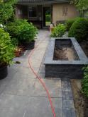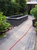 In deze tuin is gebruik gemaakt van tegels 60x60 formaat, dit omdat het de tuin goed verruimd. Tevens is er 4 lagen hoog blokken aangebracht en met speciale lijm vastgemaakt. Daarna zijn de planten teruggeplaatst, zoals de bewoners dit wilden. |